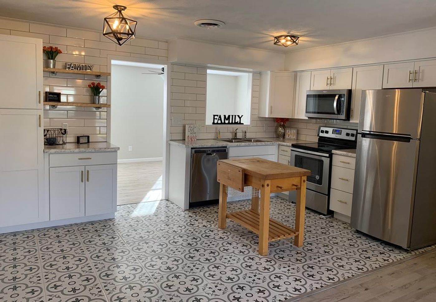 A MUST SEE! Completely remodeled open floor plan home with eat-in kitchen. Brand new kitchen, new cabinets, countertop, ceramic subway tile, and appliances. Brand new bathroom with tub/shower and subway tile, vanity, toilet, faucet, and mirror. New paint throughout, new interior doors and all new light fixtures. Home has all new hardwood floors and ceramic tile. New pex plumbing throughout the house. Open deck and covered deck. Storage building sitting on a large lot. 2 car attached carport.
