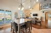 From the moment you step inside, the grandeur of open, vaulted ceilings greets you, artfully highlighting the home's expansive and airy layout. The formal dining and sitting areas provide the perfect backdrop for hosting intimate gatherings or grand celebrations. Central to the living area is a striking stone, floor-to-ceiling fireplace, offering a cozy yet imposing centerpiece.
