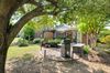 Outdoors, mature trees and curated landscaping shape a serene retreat with a pergola-covered patio perfect for gathering or unwinding.