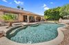 Welcome to your desert sanctuary in Phoenix's sought-after North Valley. This upgraded home features soaring ceilings, no carpet, and an open layout with a custom wall removal for enhanced flow. The chef's kitchen offers stainless appliances, an island, and opens to a cozy family room with beam accents and a stone fireplace. A large sliding door leads to the resort-style backyard with a pool, spa, and multiple seating areas. The split floor plan includes a private primary suite with a spa-like bath, dual vanities, and walk-in closet. Two additional bedrooms plus a dedicated office provide flexible space. Set on a 10,430 sq ft lot with mature landscaping, RV gate, and 2.5-car garage—all just minutes from top-rated schools, hiking, and shopping.