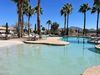 Located in the sought after 55+ gated community of Solera, this home offers the popular DAYBREAK floorplan with 2 bedrooms, 2 bathrooms, a den, and an open great room. The kitchen features a generous eating area and a center island with seating. The large primary suite is split from the guest bedroom and den. Both the front and backyards are beautifully landscaped. The backyard is a wonderful private retreat, complete with a gas fireplace, waterfall, gas firepit, built in BBQ, and an extended flagstone patio. All appliances in the home convey and the furnishings are also available. A new energy efficient HVAC was installed in 2021. The 2-car garage has built in cabinets for additional storage. Perfect for buyers seeking an active resort lifestyle, Solera offers 2 pools, a spa, fitness rooms, 18-hole golf course, clubhouse, tennis and pickleball courts, bocce ball, walking paths, social activities and an on-site concierge, all covered by HOA dues.