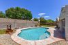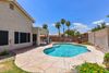 Original Owner of Stunning 3 bed, 2 bath home located in north Glendale has plantation shutters in the front room, updated diagonally cut tile, built-in cabinets in the family room, and new hardware throughout. Recessed lighting, updated lighting fixtures, and LED lighting. Crown molding in family room, hall, and second bath. Primary bedroom is spacious with walk-in closet, large bathroom with tiled shower and separate tub. Kitchen has granite countertops, a walk-in pantry, stainless steel appliances, ample storage. Lg wood ceiling covered patio in backyard, flagstone pool surround, pebble sheen pool, pavers for firepit, built-in BBQ. Garage has built-in workbench & epoxy floors. New sunscreens, water heater (2022), AC (2021), insulated garage door (2022), and exterior paint (2023)