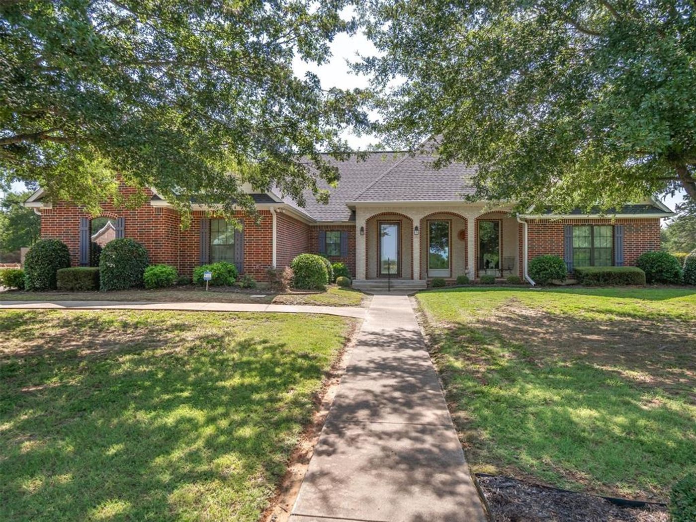 Custom brick home has 3 bedrooms (split),2 baths, 2 half baths, two- 2 car garages, office (could be 4th BR), sunroom, large living room with electric FP, 11’ceilings with brick arches separating the kitchen-dining areas. Kitchen has SS appliances, dining island, granite c-tops +plenty of storage. Guest BR’s have Jack & Jill bath with 2 water closets. Primary suite has walk-in closet off the BR & another in the bath area near a dressing counter. Marble shower, marble jetted tub & separate vanities. There’s a propane heater in primary BR in times of lost power. Sunroom has vaulted wood ceiling & windows galore. Main garage is 23x23 with storage room. Second garage is 22x21 & has drive-thru doors to the back yard, shelving & lots of room. 2023 wood privacy fence, 10x15 covered deck off sunroom & 15x15 concrete patio in the yard. Sprinkler system, 2 hot water heaters, radiant barrier in the attic, whole house surge protection, new roof in 2019. See Seller's list of items & upgrades!
