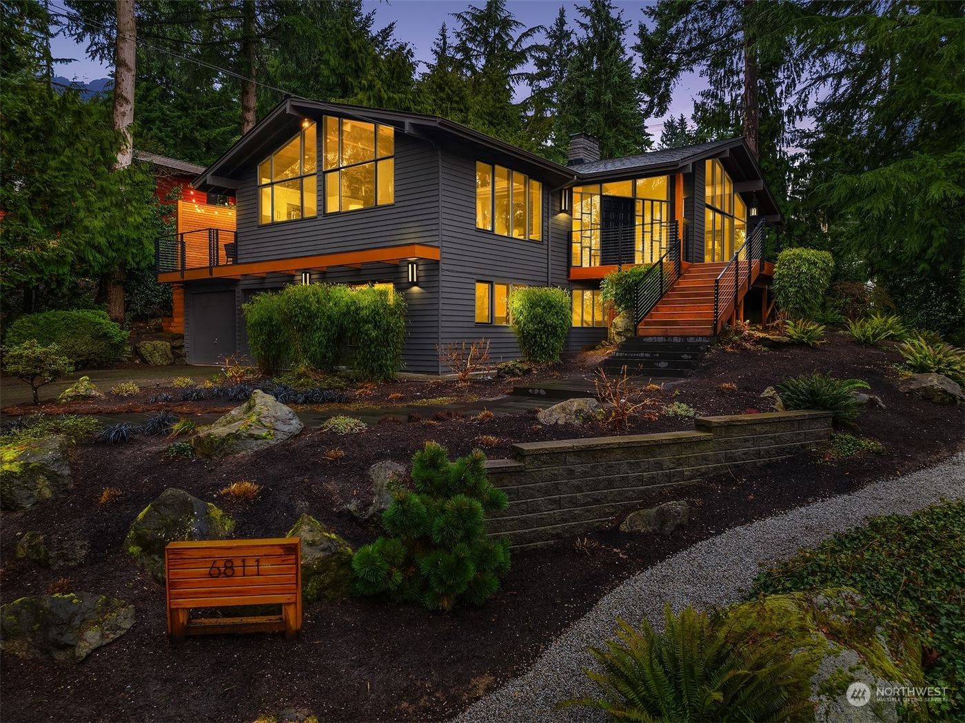 Tucked away at the end of a private lane on a large lot, this two-level contemporary northwest, Leo Fisher designed home has been meticulously updated throughout. Main level features soaring cathedral ceilings & floor-to-ceiling windows; open concept chef’s kitchen with large island; natural light filled family, living & dining rooms; spacious primary suite & two additional bedrooms. Step downstairs to a media & rec room, 4th bedroom, laundry room & flex space perfect for a workout room or home office. Sprawling yard is beautifully landscaped with multiple useable spaces, level grass play area & beautiful, extended deck & patio for entertaining. All the work has been done! Minutes to schools, shopping, Pioneer Park trails & MI Beach Club.