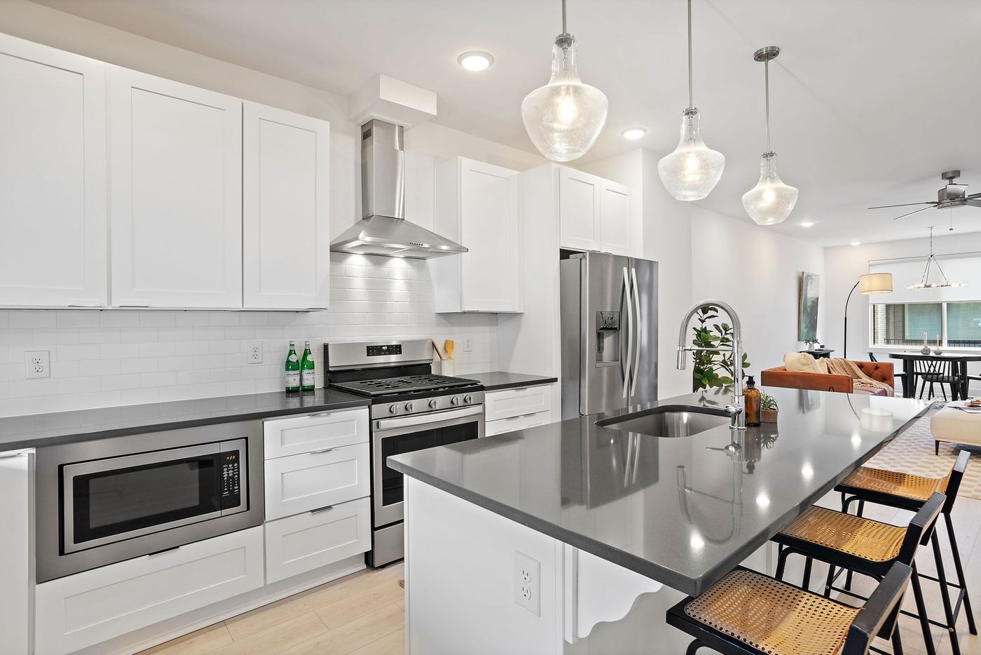 Calculate***Seller offering $$20k$$ in closing costs/buy down/prepaids assistance -- welcome home!!*** Welcome to LIKE-NEW, luxury living at Creative Way Village! This corner-unit brownstone offers an upscale yet inviting retreat just 10 minutes from Downtown Nashville. Flooded with natural light from extra end-unit windows, the home boasts an open layout enhanced by soaring ceilings, 8’ doors, and rich engineered hardwood floors throughout. Designer-curated interiors showcase this highly upgraded unit – from the chef’s kitchen with GE Café appliances and a waterfall quartz island, to the stylish living area perfect for entertaining. The kitchen’s custom cabinetry, chic tile backsplash, and spacious pantry with built-ins will delight any home chef. Adjacent, a built-in wet bar elevates your hosting potential, while modern pendant lighting and upgraded fixtures add a touch of elegance to every room. Each of the three bedrooms is a private suite, complete with its own spa-inspired bathroom featuring quartz countertops, premium tile, and spacious vanities. The primary suite pampers you with a large walk-in closet (custom built-ins included) and a bathroom straight out of a luxury hotel. No detail has been overlooked, from the smart-home features (security cameras, smart thermostat) to the ample storage cleverly integrated on all three levels. And with a rare attached 2-car garage, you’ll have secure parking and room for all your gear – a true bonus this close to downtown. This impressive home also features a spacious bonus room/loft. Enjoy resort-style living at Creative Way Village with a sparkling pool, cabana lounge, outdoor kitchen, dog park, and yoga green space—all just steps from your door in this gated community offering privacy and peace of mind. Minutes from East Nashville’s top restaurants, shops, and entertainment, This home delivers luxury, comfort, and convenience in a truly turnkey corner home that defines modern Nashville living.