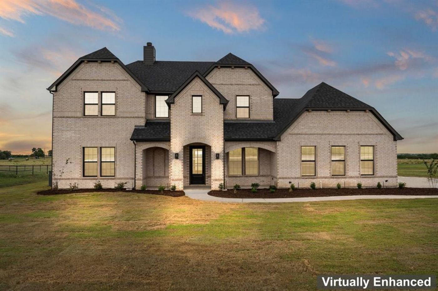 Beautiful New Construction! Four-bedroom home plus office on 1.01 Acres. Open floorplan with vaulted ceilings, upgraded light fixtures, and new stainless appliances. The floorplan is great for entertaining with its open floorplan, additional seating at the kitchen island, and a gracious covered back porch with a woodburning fireplace creating additional living space outdoors. The primary bedroom is on the main level with an ensuite bath and walk-in closet. The remaining three bedrooms plus a game room are upstairs. This home is open, bright, and airy!