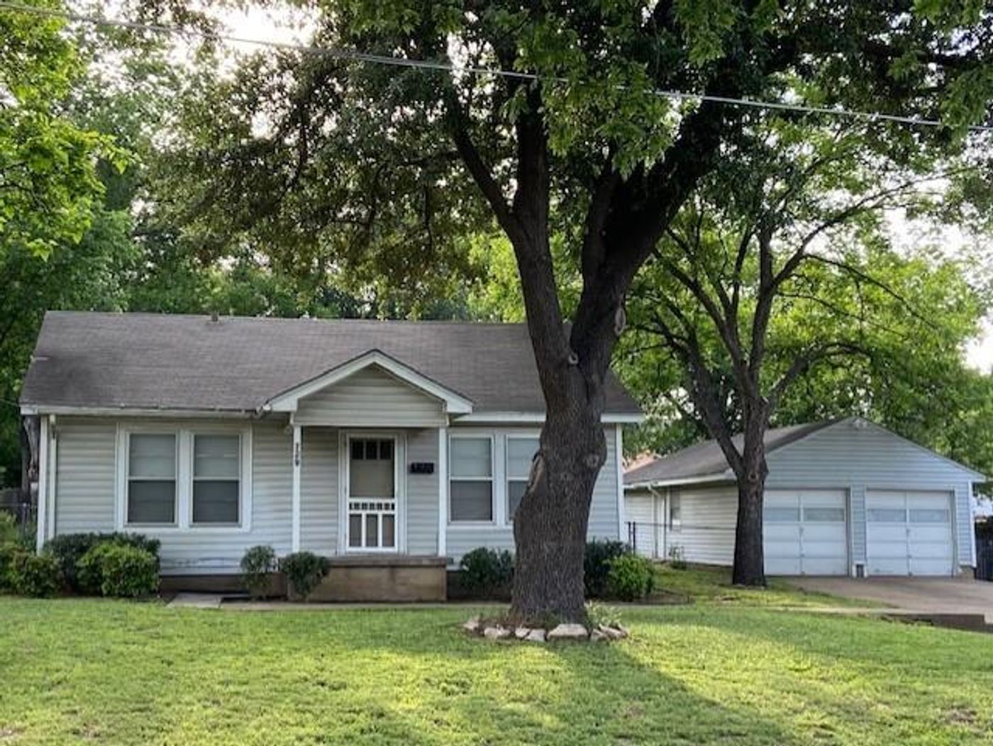 Great home on a great lot. This two bedroom home has original wood floors in the living room and bedrooms, and brand new vinyl in the kitchen and bathroom. The bathroom also has a new vanity. The two car garage has an attached workshop with electricity. Pier and beam foundation was leveled last month and has a transferable warranty. House needs some sheetrock repair since the leveling. Wonderful backyard with room for a large garden, volleyball net, or a game of football or baseball.
