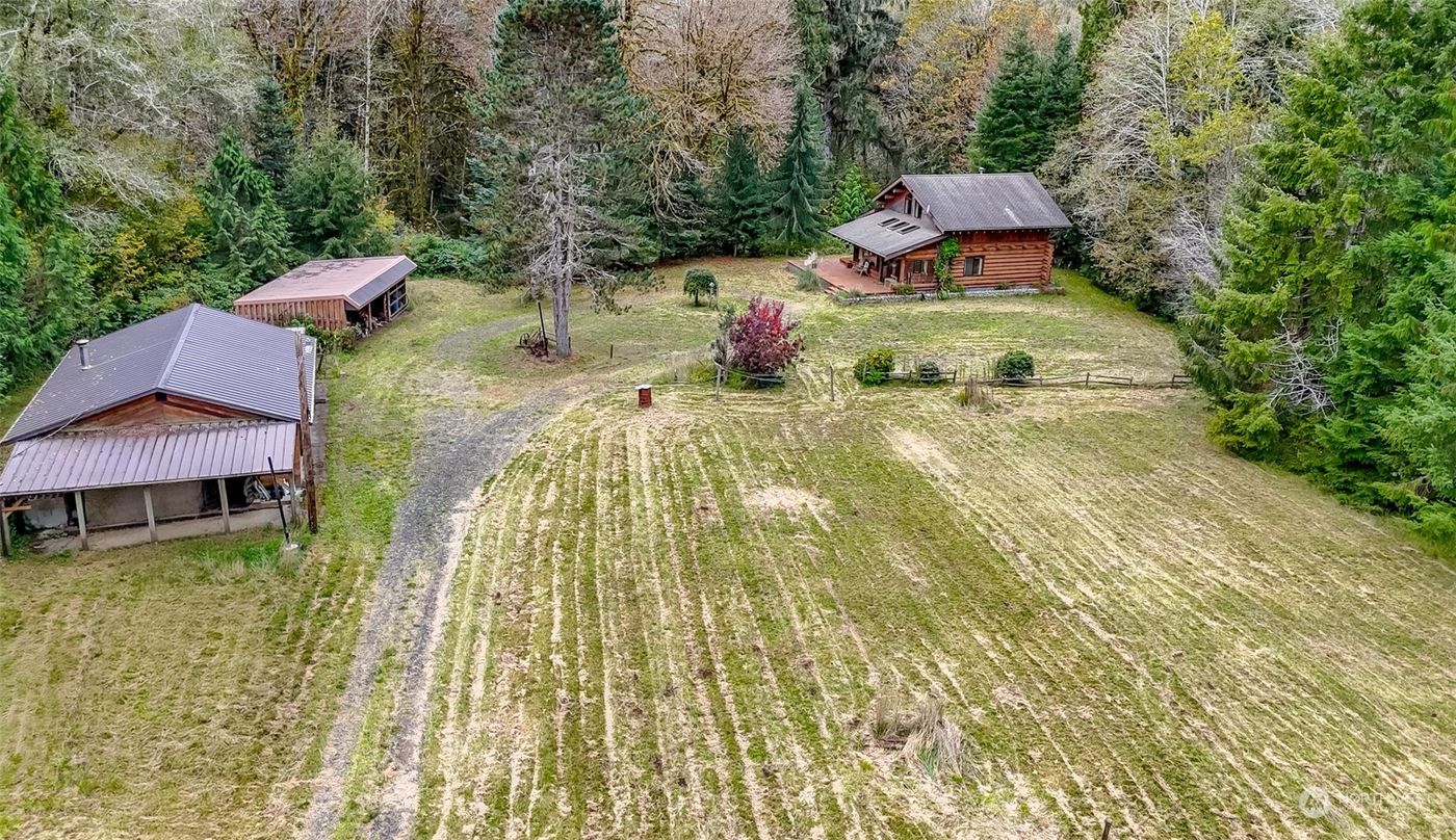 Rare riverfront escape. Looking for privacy and serenity? Custom built 1758sqft log home privately situated on nearly 12 acres. Rejuvenate yourself sitting along the approx. 360' of low bank river frontage (bring your fishing pole or swim suit) Near the river trail you'll find your very own picnic/camping area with cabana/fire pit. Additionally, there is a spacious detached 2 bay garage/shop and 2 bay carport and a large wood shed. Car enthusiast looking for space to park your treasures or toys? Main floor features living room with vaulted ceilings and skylights. Kitchen with bar stools and dining room. Main floor Primary, walk in closet and continental bath. Upstairs, another room, 3/4bath & rec room.