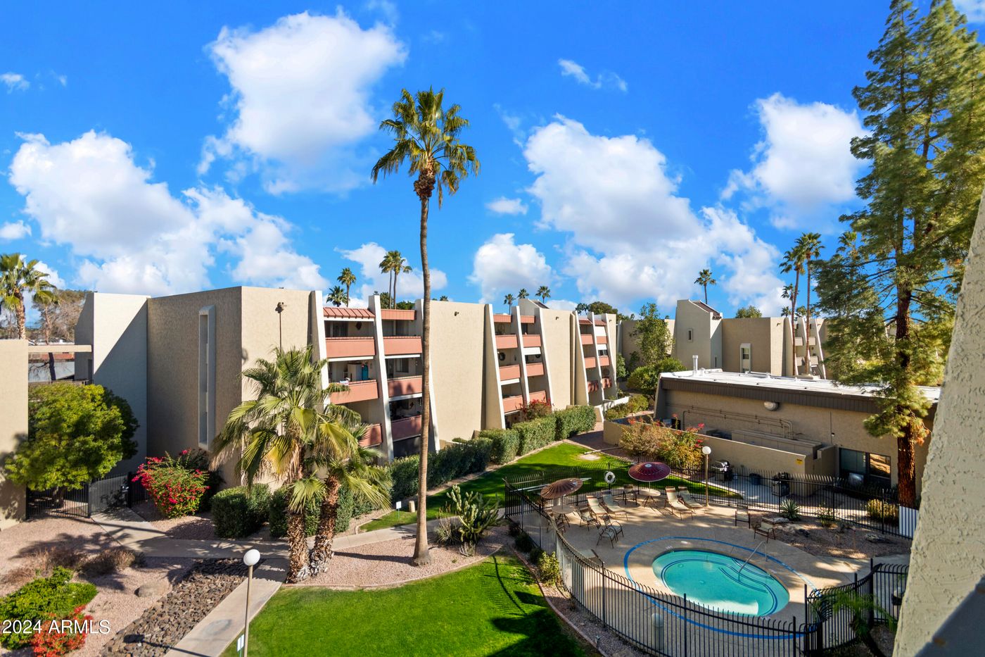 Located in the Heart of Old-Town Scottsdale! This cozy 2 bedroom, 2 bathroom, 1,100sqft unit offers great views and privacy from the highly sought after top floor. Maya Condominiums has no rental restrictions and is perfect for a Short-Term Rental property. New interior paint and carpet throughout the unit done in January of 2024. HOA is very comprehensive and includes utilities, sewer, garbage, community amenities, and much more!