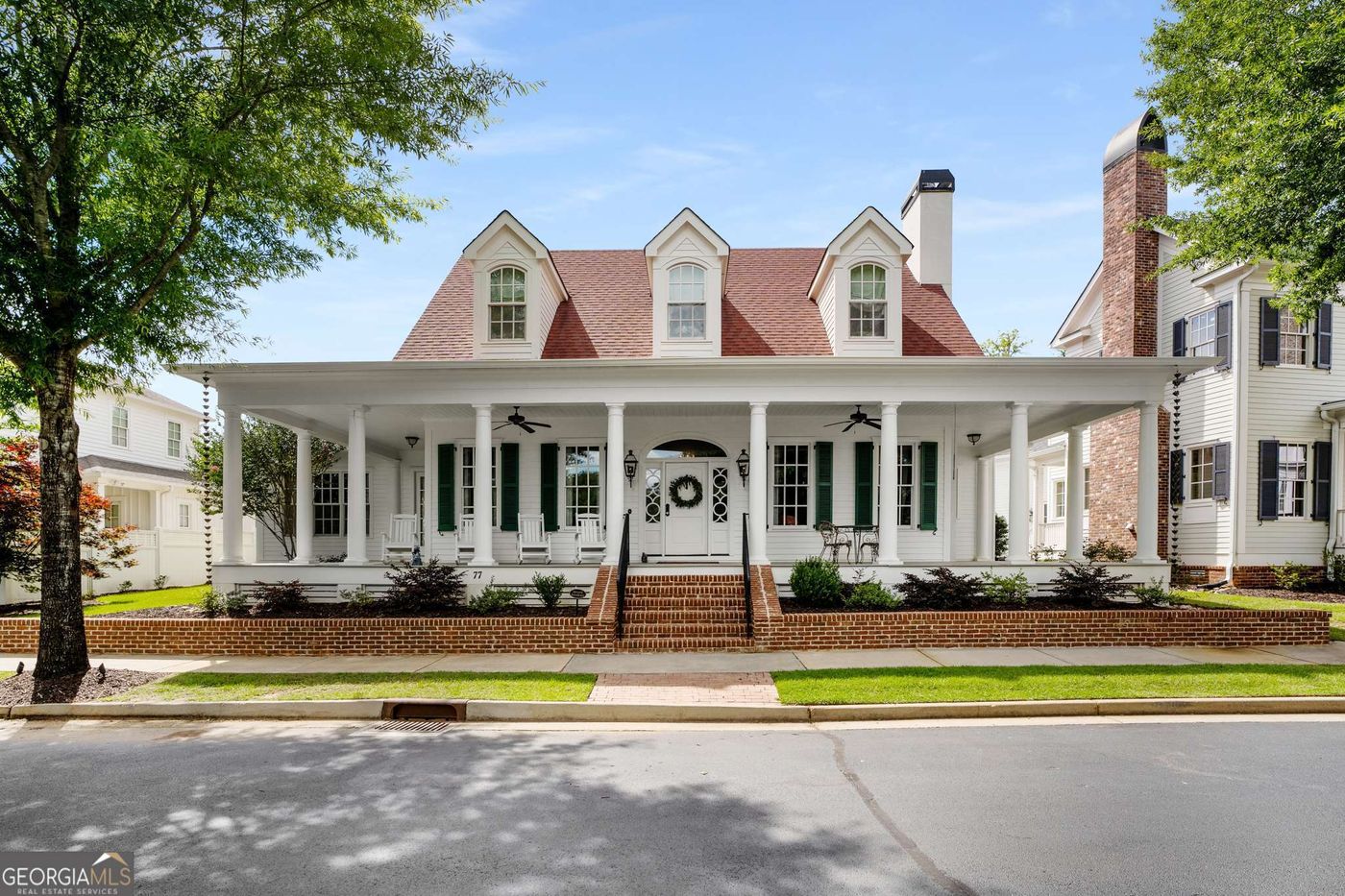 DESIGNED BY MITCH GINN, THIS GORGEOUS HOME IS LOCATED IN THE HISTORIC DISTRICT OF SENOIA IN THE GIN PROPERTY (recently the home of The Walking Dead!). Enjoy all that downtown Senoia has to offer just steps from Main Street, with true walkability to dining, shopping, and entertainment! With lawn maintenance included in the HOA, enjoy "lock & leave" convenience! This home, sited on the only DOUBLE LOT in the neighborhood overlooking the neighborhood pond, was designed with a most thoughtful layout - allowing for both formal dinners as well as casual entertaining and perfect for comfortable everyday living! The stunning, eclectic decor is grounded with finely crafted traditional custom millwork and designer finishes! Features include wide plank pine floors, solid wood doors, glass doorknobs, luxury wallpaper, designer lighting, wainscoting, custom ceiling treatments, marble counters and vintage style appliances. From the wrap around front porch, enter the wide foyer flanked by the formal dining room and cozy living room/study with solid wood pocket doors, built in bookshelves, brick fireplace, and painted tin ceiling! The foyer leads to a broad gallery hallway and ahead to the spacious screened porch and expansive walled courtyard with outdoor fireplace offering the perfect spot for al fresco dining! The gallery hall directs you one way to the kitchen and family/keeping room and the other way to the main level owner's suite. The roomy kitchen/family room area features shiplap ceiling, brick fireplace, French doors opening to the wrap around porch, built in banquette, marble counters, island with bar seating, farm sink, pot filler, vintage style appliances and plenty of room for a traditional breakfast table! Off the kitchen is the cheery mud room and laundry room! Doing laundry will never feel like a chore again! Down the opposite side of the gallery are the powder room with antique vanity and owner's suite with diamond patterned millwork on the ceiling. The luxurious bathroom features a free standing clawfoot tub, double vanities with marble counters and period style black and white tile flooring, echoing the diamond pattern of the bedroom ceiling! The upper level is finished with the same quality as the main floor and includes wide plank pine floors, a second family room area and 2 large bedrooms with en suite baths! Welcomed by a brick front walk and gas lanterns, the large front porch overlooks the neighborhood pond, which is the perfect place for afternoon cocktails and to greet neighbors for impromptu porch gatherings! Senoia is a thriving historic town with an eye toward the future! It is a golf cart friendly town with lots of community activities - Weekly Farmer's Market, Alive After Five, PorchFest Senoia, Car Show, Light Up Senoia, and Candlelight Tour of Homes, to name a few! Come for a visit and find "The Perfect Setting for Life"!