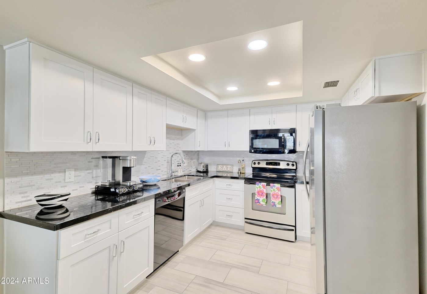 A must-see gorgeous, move-in ready furnished gem! Everything you need is already there. Located in highly desirable Old Town Scottsdale. Fresh paint, floors and designer kitchen too. Notice the recently installed energy efficient windows and patio slider. A few steps to the nicest of the 3 pools. Live like you are on vacation at an incredible 24-hour guard gated resort. Walkable to Scottsdale's best dining, shopping, & entertainment! A 9-hole golf course (free to play), gym and 3 heated pools. HOA fee Includes central ac / heat, blanket insurance, gym, trash, golf course usage, and water. Your only utility is a tiny electric bill. This is not one of those chopped up investor flips that sacrifices closet space. PET FRIENDLY BUILDING! A few doors down from the laundry room.