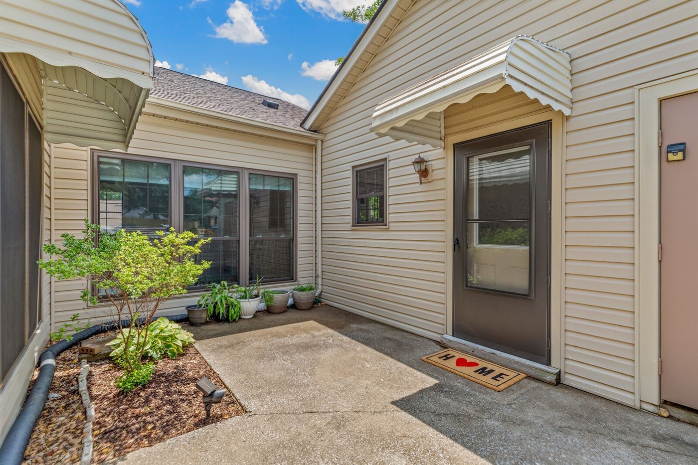 Showings start FRIDAY at 5pm. Better than new! Move in ready 3BR 2BA end unit. Come check out this hidden jewel! You will love all the windows that offer great natural light while maintaining your privacy because they face your very own courtyards. Plenty of room to garden, cute covered porch, wood burning fireplace, new flooring, new blinds, new marble counters. Roof 2019, Hvac 2023. Washer and dryer included! Just move in!! Low monthly HOA includes Pool, Trash Pickup, Exterior Maintenance and Ground Maintenance. Easy access to I40 and I65. FHA approved subdivision