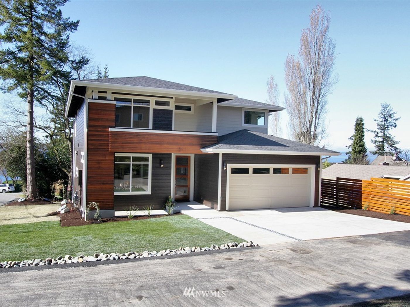 Stunning Sound view home. This new construction 4 BR with contemporary open design features 2 covered decks, tiled fireplace & oversized slider doors for Olympic Vistas. Designed as a versatile home with 2.5 baths including a gorgeous soaking tub, walk-in shower-- the upper level has a deck off master bedroom, bonus room and upstairs laundry room. The kitchen/living area features quartz countertops, stainless steel appliances and kitchen high-end cabinetry. Home includes 550 SF 3 car garage.