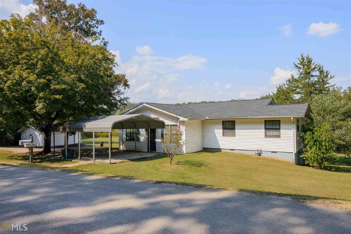 Beautiful, quiet location just 2 mins south of downtown Chickamauga. One level 3 bedroom, 2 bath home features a sunroom, living room, kitchen/dining combo, den. Outside is a detached garage, detached metal carport, a one-car drive under basement garage and a one- car drive-under carport. Unfinished basement is great for storage. Land includes two parcels for a total of 2.36 acres. Very peaceful and serene. Very convenient to Ft. Oglethorpe and Chattanooga. Come check it out!