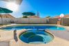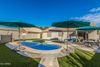 Don't miss this one! Come see this adorable three-bedroom, two-bath home nestled in the heart of Parkwood Ranch in East Mesa. Situated within an oversized lot, this home has a delightful play POOL with SPA and an inviting backyard making it an absolute must-have for the upcoming summer season! Step inside to discover the charm of beautiful vinyl flooring, complemented by elegant low vault ceilings in key areas. The spacious living room and wonderful eat-in kitchen provide great space for both relaxation and entertainment. Head outdoors to a generously sized yard featuring an awesome pool and spa with synthetic grass, a covered patio, and an enclosed side yard—perfect for crafting a dog run or additional storage. The two-car garage adds convenience, and for your , (see more tab) refrigerator, washer, and dryer are all included. With its low-maintenance landscaping front and back. It's perfect home for a first time buyer, those considering downsizing or maybe someone seeking a second home. Seize the opportunity and don't miss the chance to make this property your own.