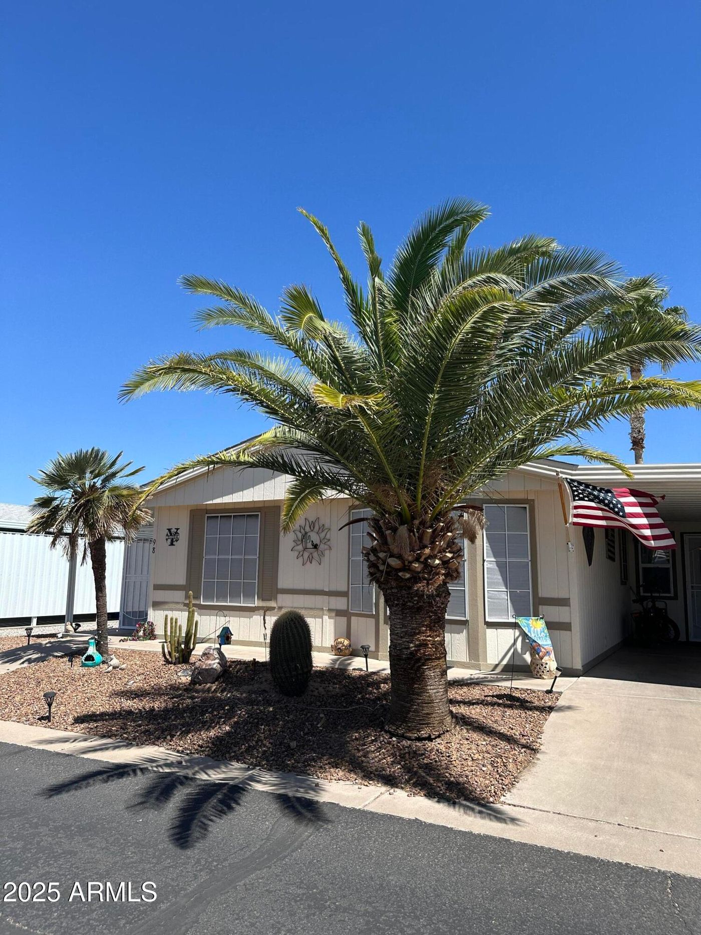 CalculateThis 2-bedroom, 2-bathroom home features a large storage shed and two decks. The front deck is bathed in sunshine, making it an ideal spot to enjoy your morning coffee during Arizona's spectacular winter mornings. The second deck is covered, offering a shady, cozy space for outdoor relaxation and entertaining. The home boasts an open floor plan and comes furnished, including a golf cart.