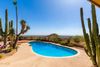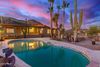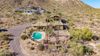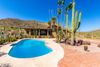 Some of the most breathtaking views and iconic Arizona sunsets in the valley! Sitting on almost 2 ac this residence was thoughtfully crafted by the artist/owner beginning in 2011. The 2500+ sf addition is seamlessly joined with the 2357 sf original ranch home showcasing rich teakwood, granite, and cedar. Teak cabinetry, walls, and flooring create a warm, elegant atmosphere. Hand-painted desert landscapes and handcrafted solid teak doors add unique charm, while steel and glass exterior doors (9 total) offer security and style. 6 car garages with room for 10 adds to this unique property. An enclosed vestibule opens to a tranquil courtyard with natural stone waterfalls. Inside, the expansive great room and kitchen flow beautifully, with a secondary bedroom and full bath completing the space