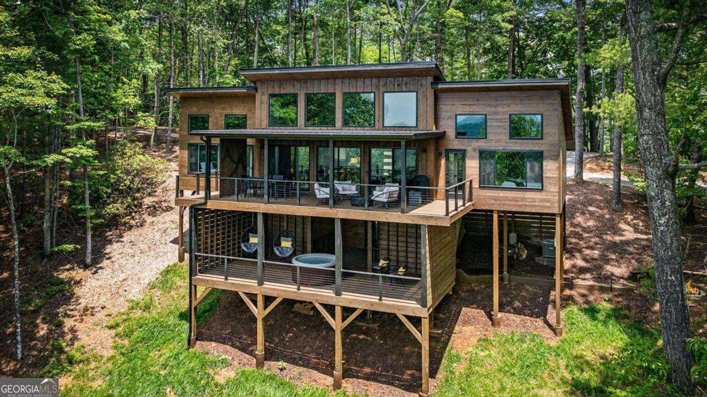 Welcome to your turnkey Mountain Modern Retreat in the heart of the sought-after Cherry Log Mountain neighborhood, perfectly nestled between Blue Ridge and Ellijay*just 12 minutes to either town. This Custom Designed, Built and Professionally Decorated 2BR/2.5BA home offers breathtaking mountain views and direct access to the Benton MacKaye Trail, all while delivering the ultimate in comfort, style, and convenience. Inside, you'll find Quartzite Countertops, a well-stocked custom kitchen with new appliances, tiled bathrooms with barn-style glass doors, and a stunning live-edge dining table to enjoy entertaining. Beautiful Large windows and casement windows bring in natural light and Big Mountain View from each room, while memory foam mattresses and thoughtful furnishings create an exceptional experience. The open-concept layout features a large den and dining area, oversized bedrooms and terrace level with its own half bath, firepit area, and expansion potential-3BR septic in place. Step out onto expansive decks with a cozy circular hot tub, gas fire bowl, outdoor grill, and serene mountain vistas. Additional highlights include- Thermostatically controlled gas fireplace with remote, Energy Efficient Spray Foam Insulation, Buried 250-gal propane tank, Community Water, 5-star rated Airbnb favorite, Fully furnished and Rental-Ready! Whether you're looking for a personal mountain haven or a proven income-producing property, this one checks every box. Offered fully furnished and stocked-just bring your hiking boots, fish poles-unwind. Enjoy Mountain Life!