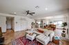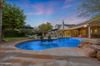 CalculateENCHANTED ORCHARD lush oversized backyard! 6bd/4ba Beautiful bright remodel, open floor plan, private suite with steam shower & soaking tub, herringbone tile fireplace, backsplash & refinished cabinets. Everyone gets an office or bonus space; Downstairs has 3 bedrooms+3 full bathrooms+den! Upstairs has 3 more bedrooms & full bath. Oversized lush lot at the end of a cul-de-sac is adorned with moringa trees palms pecans lemons apples & roses with rock waterfall pool & spa oasis with Baja shelf for lounging in your paradise. Wraparound covered patios lead to many magical nooks for intimate gatherings for plenty of entertaining possibilities with built-in outdoor grill & flagstone decking. Step out front under mature trees that shade the house & hit the trail to the community dog/play park.