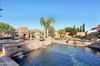 CalculateABSOLUTELY STUNNING home w/4 bedrooms, 3.5 bathrooms & 3-CAR GARAGE. This location is PRIME - close to the 4 corners & situated on a large PREMIUM N/S lot overlooking a desert wash w/an AMAZING MOUNTAIN VIEW. As you drive up, notice the mature lush landscaping w/paver WALKWAY/PORCH, stacked stone accents, decorative walls, SPECTACULAR IRON front door, water feature & extra driveway w/double gate (beautifully lit up at night). Step inside & you will feel like you are in a model home. BEAUTIFUL CONTEMPORARY tile flooring in all the right areas plus upgraded carpets in the bedrooms, large baseboards, CUSTOM window coverings & shutters & GORGEOUS LIGHTING throughout. This home was totally enhanced in 2022 w/PURE LUXURY amenities & has been meticulously maintained. The GOURMET CUSTOM KITCHEN features LEATHER GRANITE countertops, oversized breakfast bar/island, SS WOLF GAS 8 BURNER RANGE w/SS hood, WOLF convection microwave & oven, SUB-ZERO refrigerator, COVE dishwasher, CUSTOM staggered hickory raised panel cabinets w/larger crown molding, soft close doors/drawers, spice rack, rollouts, recycle center, DESIGNER backsplash, black farmhouse sink, pot filler, pendant/under counter & over cabinet lighting & reverse osmosis. You will love the eat-in kitchen & great room area w/large windows & double French doors that deliver an abundance of natural light plus surround sound for you to enjoy your favorite music. Oversized primary suite w/sitting area, double French doors CUSTOM BATHROOM boast a huge shower w/double heads & sprayer, double vanities w/leather granite & framed mirrors, spa tub & closet with built-ins. Two other full bathrooms are highly upgraded as well. Step outside to an AMAZING RESORT OASIS an ENTERTAINERS DREAM - large pool w/3 fountains & spa, extensive amount of lighting, pavers & travertine, fire pots, built-in stacked stone BBQ w/2 side burners, bar area & lighted cabana, stacked stone fireplace gas & wood, bench areas w/cushions, mister systems, spacious covered patio w/tile & TV, grass & beautiful landscaping accented w/palm trees that offers a picturesque setting for relaxation & entertaining. The 3-car garage w/epoxy floors, extra lighting, built-in cabinets are ideal for storage. No detail has been overlooked in this DREAM HOME.