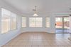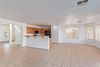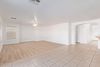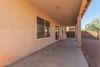 The backyard offers a spacious outdoor space with a wall-to-wall covered patio, ideal for year-round outdoor enjoyment. The two-car garage offers practicality and storage space
