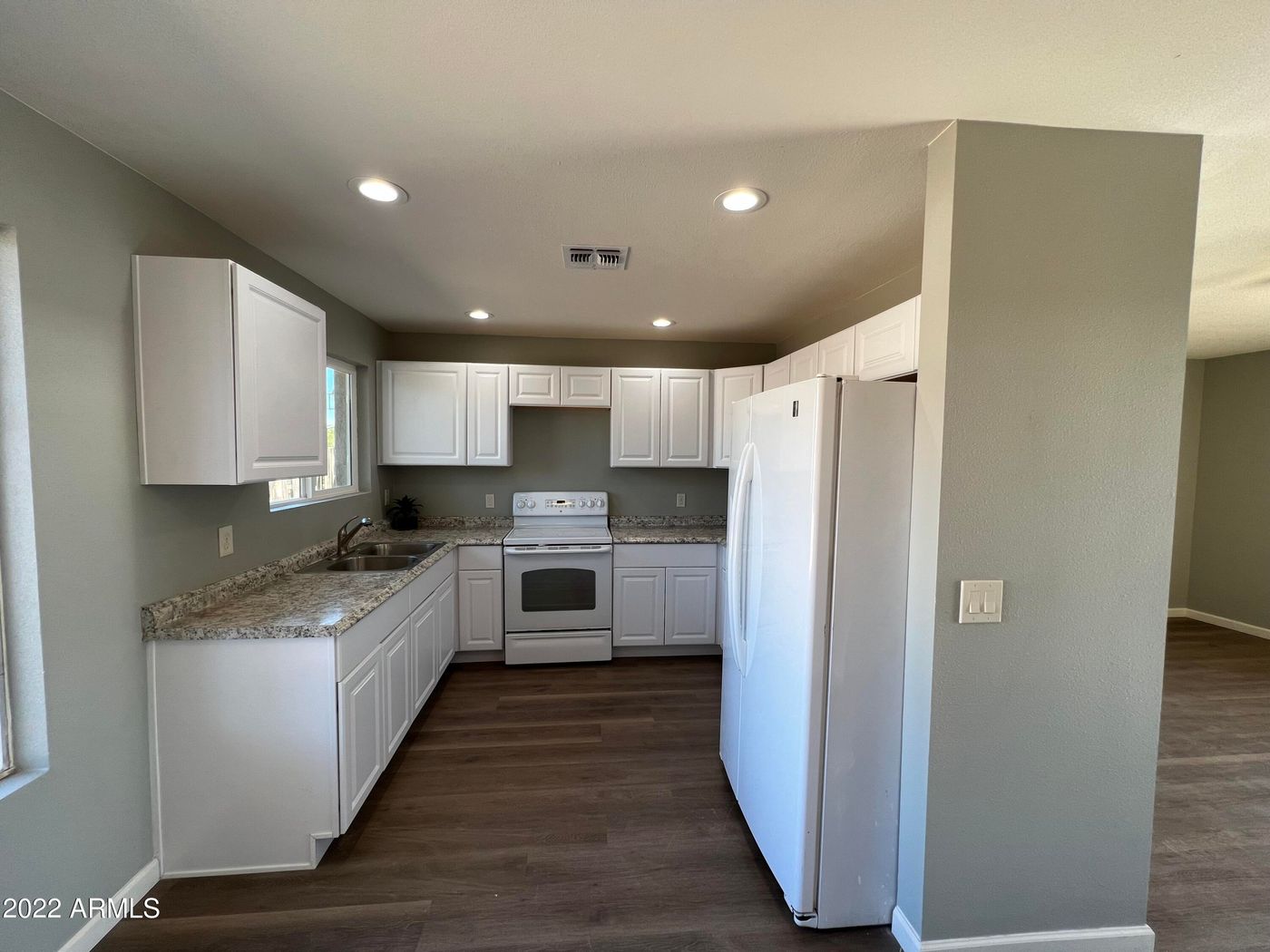 This completely remodeled 2 bedroom home with 2 full Baths is located in one of Coolidge's more mature areas. Both updated baths feature open walk-in showers surrounded by ceramic tile. The bathrooms also feature new vanities with build-in sinks and new toilets. The home renovation includes: all new electrical wiring, plumbing, doors, door trim, baseboards, kitchen with new sinks, and modern white cabinets, flat cook-top stove, sink. refrigerator and counter tops. Complete replacement of the roof and much more. The flooring throughout the entire home is scratch proof. The home is all electric and has a new hot water heater. Each room has its own ceiling fan. The home inside and out completely re-painted. The front yard has its own built in water sprinkler system. Make an offe