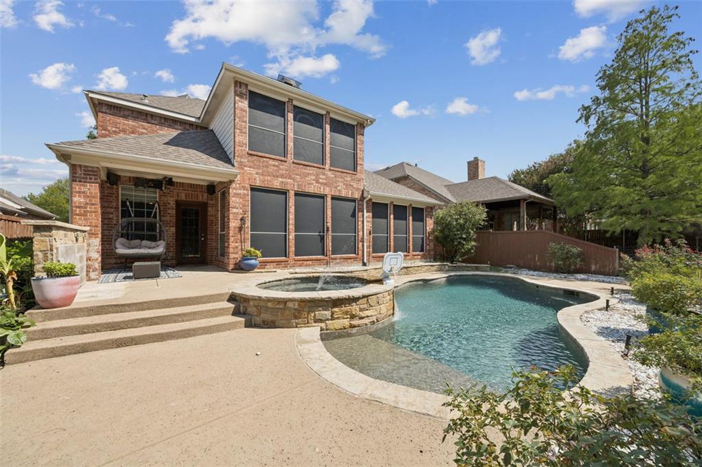 CalculateWelcome toa beautiful 2-story home, nestled in a premier McKinney golf-course community. Built in 2006, this thoughtfully designed two-story residence offers 4 bedrooms and 2.5 baths. Open-concept floor plan with abundant natural light. From the soaring vaulted ceilings and loft overlooking the light-filled family room to the open-concept kitchen with stainless appliances, this home balances modern style with everyday practicality. Flooring: Luxury vinyl plank and ceramic tile throughout. The master suite is a private retreat complete with dual vanities, a garden tub, separate shower, and a generous walk-in closet. Enjoy outdoor living in your fenced backyard with a cozy patio, while community perks—like the pool, playground, jogging paths, and golf course—enhance your everyday lifestyle. Located within Frisco ISD and just steps from Sonntag Elementary, this home presents a perfect blend of convenience, comfort, and value.