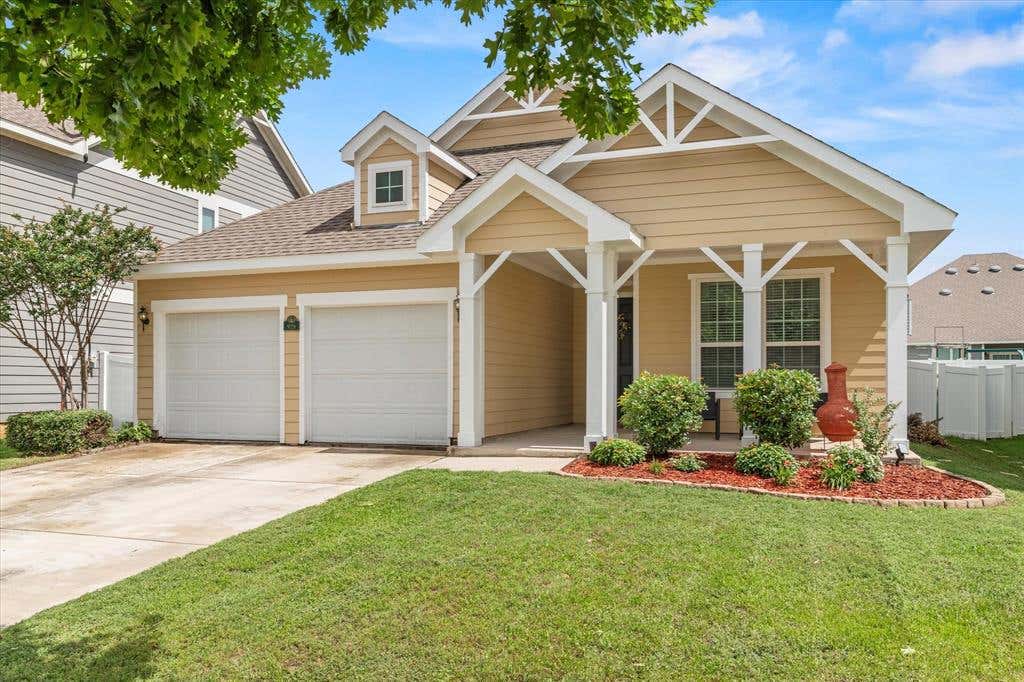 CalculateWelcome to this charming two-story Craftsman-style home, perfectly situated in the master-planned community of Providence Village. A welcoming front porch sets the tone as you step inside to discover warm, wood-look flooring that flows throughout the main living areas. The spacious living room seamlessly connects to the kitchen and breakfast nook, making it ideal for everyday living and entertaining. The galley-style kitchen is a chef’s delight, equipped with sleek stainless steel appliances, an LG dual oven, built-in microwave, and a convenient pantry for extra storage. The primary bedroom is thoughtfully separated from the secondary bedrooms and features a walk-in closet and ensuite bath. Two additional bedrooms downstairs share a well-appointed full bathroom. Upstairs, you’ll find two more spacious bedrooms, a full bath, and a versatile 14x6 storage closet or flex space—perfect for a hobby room, home office, or additional storage. Enjoy all the resort-style amenities Providence Village has to offer, including multiple pools, a clubhouse, fitness center, playgrounds, sports courts, fishing lakes, and more. With so much to explore and enjoy, you may never want to leave!