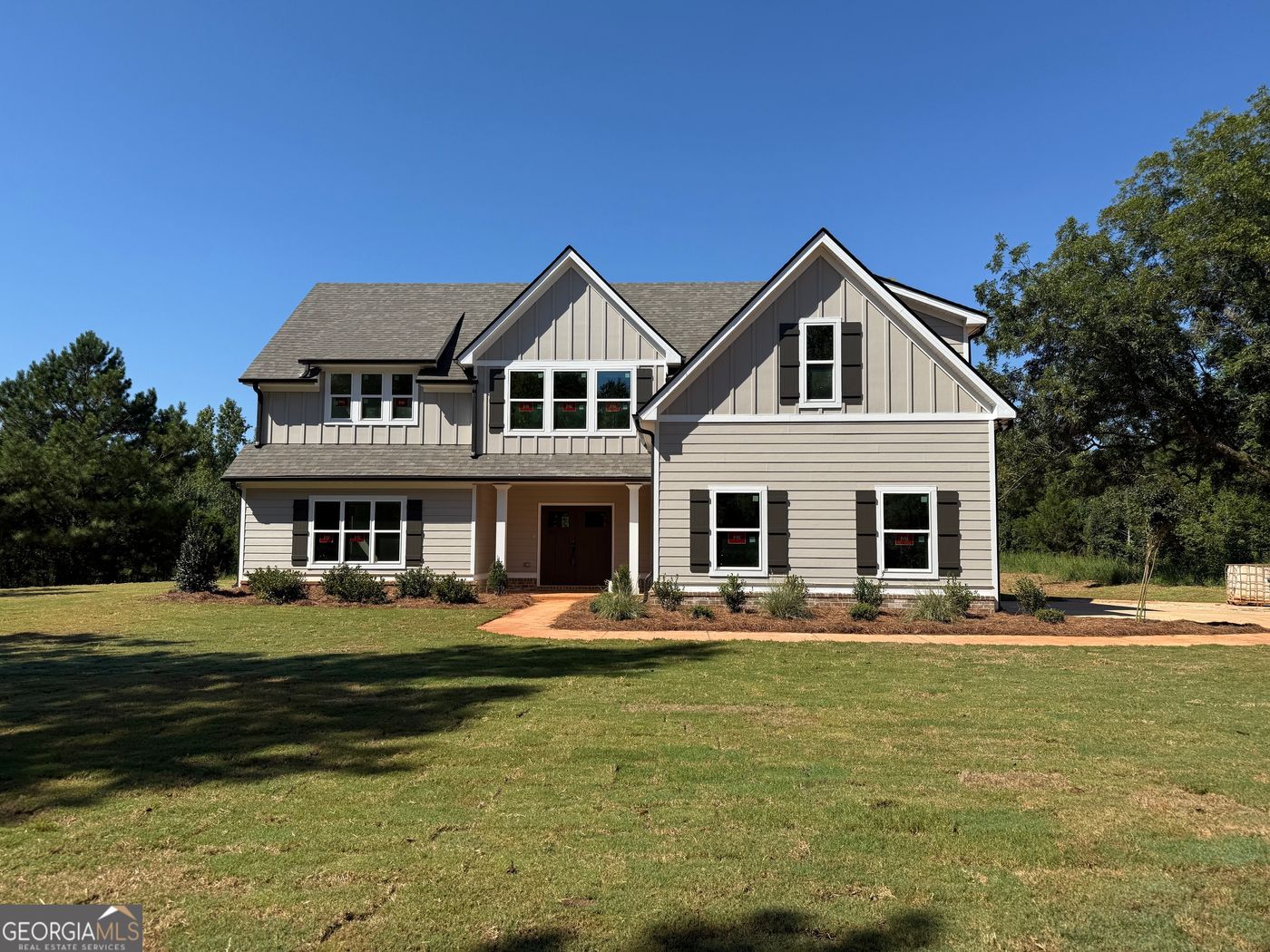 Highest and best offer due by Saturday, 2/24/24, at Noon. The one you've been waiting for! Gorgeous barndominium style home (but stick built) - "The Meadow Creek" - on 6.68 acres of green grass and a beautiful creek. 2 car detached shop/garage already built! Located in Wood Creek - a small development of homes on acreage and mini-farms. No HOA or restrictions! This beautiful home offers 4 bedrooms, 3 full baths, and an open floorplan! The family room offers a soaring vaulted ceiling with fireplace focal point, a vaulted dining area, and an island kitchen all open for easy gathering and entertaining. The kitchen features an island with counter seating, plentiful real wood cabinetry with soft close hinges, granite countertops, and tile backsplash. There's a mud room from the side entry with a closet. Spacious laundry room. The secondary bedrooms are nice size. Two bedrooms share a full bath in between with a dual sink vanity and a separate wet area. There's a full bath in the hall that serves the guests and the 3rd secondary bedroom. The primary suite is tucked away in the rear of the home and features a vaulted ceiling, a large walk in closet, and a beautiful bath with a tile shower with glass door, a separate soaking tub, separate vanities, and a separate water closet. All bathrooms feature granite countertops. The home has LVP flooring throughout! For those who desire to take in the outdoors and the views, there's a beautiful covered rocking chair porches on the front and rear of the home with wood planked ceilings! The rear porch overlooks the creek, where you can hear the sounds of nature - perfect for a relaxing! Constructed of sturdy Hardi-planked siding with a board and battan front. Lifetime architectural roof! Total electric, except for gas line to gas logs in fireplace. Home is situated at the rear of the development and cannot be seen from the road. Plenty of concrete has been poured in front of the home and detached garage for ample parking and play space. Approx 5 minutes to all schools and 10 min to downtown Zebulon - just outside Meansville city limits. Just minutes to Hwy 19 for easy commuting and also convenient to Thomaston and Barnesville for other shopping and dining options outside of Pike County. Estimated completion date is first of April. Call Realtor for all color selections and further details.